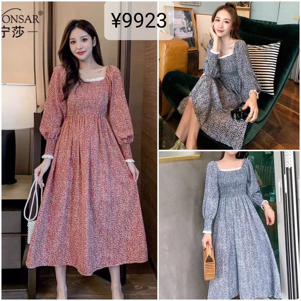 Gaun Wanita Motif Floral Dress Vintage Korean Style 9920 - 9925
